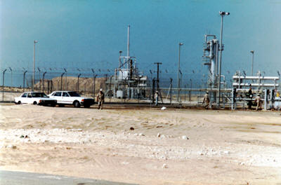 Dick Merry and Tom Lincoln testing a Khuff Gas Well in Bahrain. Dick Merry was the Chief Engineer and Tom Lincoln was Head Production Engineer. Dick died shortly after retiring. Tom Lincoln quit Chevron. |