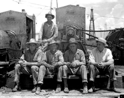 Schlumberger crew at Kern River in 1933 running an Electric Log. |